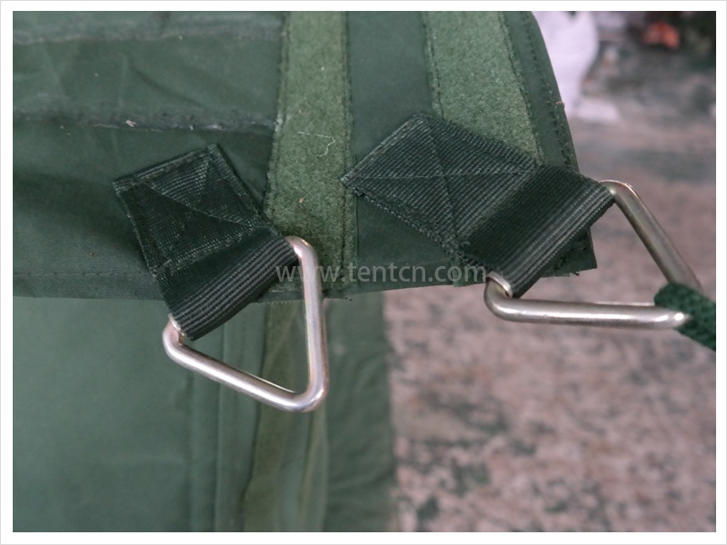 帳篷為框架式結(jié)構(gòu),結(jié)構(gòu)簡單、質(zhì)量輕。具有縱向組合功能,可擴(kuò)大使用面積。立柱插入斜梁之中,有效減少了包裝件數(shù)和體積。架設(shè)、撤收方便,機(jī)動性好,是現(xiàn)下野戰(zhàn)部隊(duì)?wèi)?yīng)用最為廣泛的野外帳篷之一。